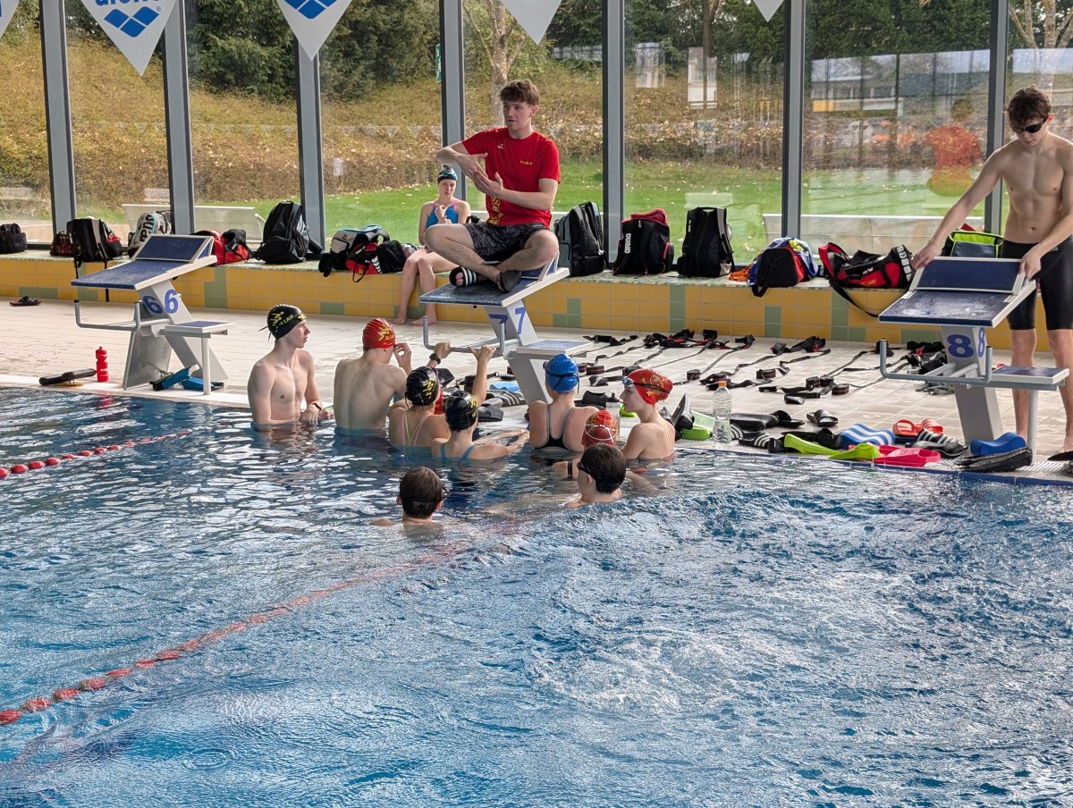 Anschließend startete das erste Training mit dem Titel „Fallschirm“. Dabei schwammen wir mit Fallschirmen, was deutlich anstrengender war. Zusätzlich übten wir intensiv die Tauchphase und das Gleiten, und verbesserten damit unsere Streamline Form.