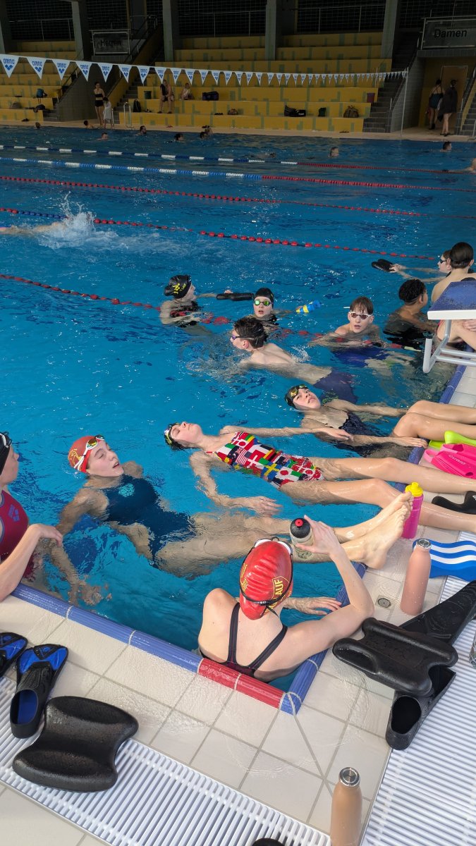 Rückblickend war es ein anstrengender, aber auch sehr gelungener Tag, voller Herausforderungen, aber auch Erfolgsmomenten für viele von uns da wir bei einem Training mit einem 100 Meter Sprint unsere Bestzeit überboten hatten zwar mit Flossen aber trotzdem!!