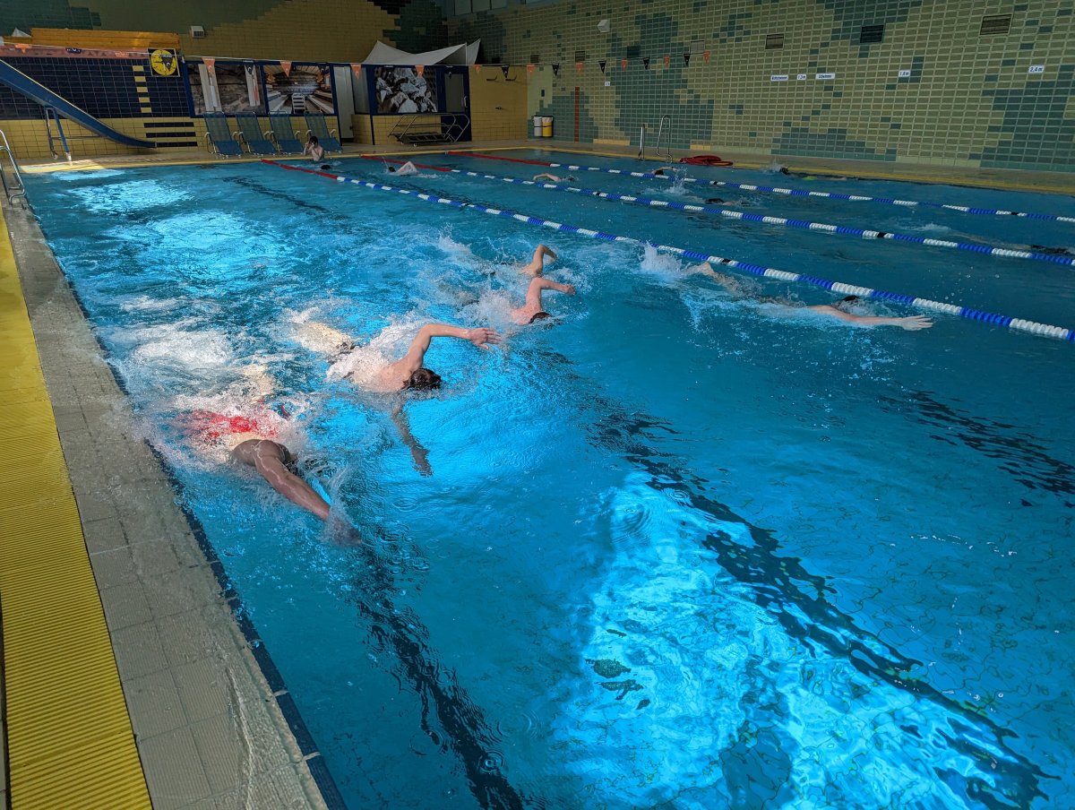 Der Tag begann heute wie die Vorherigen um 8 Uhr, mit einem ausgiebigen Frühstück. Anschließend gab es ein sehr anstrengendes Training, in dem wir unsere Sprint Fähigkeiten ausbauen konnten und unsere Technik verbessern konnten. Daraufhin mussten wir schnell zurück zur Jugendherberge, wo wir uns warme Klamotten anziehen sollten und ein schnelles Mittagessen zu uns genommen haben. Außerdem sollten die Rucksäcke mit ausreichend Essen und Trinken gefüllt sein. Wir machten uns auf zu einer kleinen Wanderung, anstelle des eigentlich geplanten Kletterausflugs. Wir nahmen den Bus zur Blombergbahn, wo ein Sessellift uns nach oben transportierte. Oben angekommen haben wir bei traumhafter Aussicht ein Gruppenfoto gemacht. Dort haben wir eine Bergumrundung gemacht, zuerst sind wir steil bergab gelaufen, bzw. runtergerutscht. Am schlimmsten hatte es Jonas erwischt der eine 180 Grad Drehung vollführte. Am Gipfel hat der Künstler, Friedrich, eine wunderschöne Abbildung unseres Vereins Wappens ins Gipfelbuch gezeichnet. Zurück an der Bergstation gab es Kekse zur Stärkung und wir nahmen den Sessellift zurück ins Tal. Dort konnten wir unsere Trainer überreden, dass wir die daneben liegende Sommerrodelbahn austesten konnten. Am Ende waren wir erschöpft und wir nahmen den Bus zurück zur Jugendherberge. Vor Ort haben wir zu Abend gegessen und noch Stockbrot und Marshmallow am Lagerfeuer gemacht.