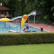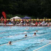 Neben den Ausdauerschwimmern hatten sich auch große und kleine Gäste im Laufer Freibad eingefunden, um ihre Schwimmfähigkeiten und Kenntnis der Baderegeln unter Beweis zu stellen. 15 Abzeichen nahmen die Wasserwacht und die SG-Lauf während des Swim Days ab. Im Nichtschwimmerbecken konnten sich Interessierte außerdem praktische Tipps zur Wassergewöhnung kleiner Kinder geben lassen. Leider war es für die ganz Kleinen doch etwas zu frisch und die Nachfrage daher überschaubar.
